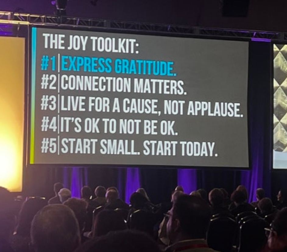It is easy to think we might be good at expressing gratitude, but are we really? How many times a day do we take for granted that someone has to do a particular something or behave a certain way? After I heard this message, I became very intentional about expressing gratitude. This led to a genuine feeling of gratefulness. I even started telling my staff (especially on hard days), “Thank you for being here and giving great care to our patients today!” The truth is, they didn’t have to show up. And if they didn’t show up, or did a crappy job, that would be additional stress on my plate. I truly was grateful!