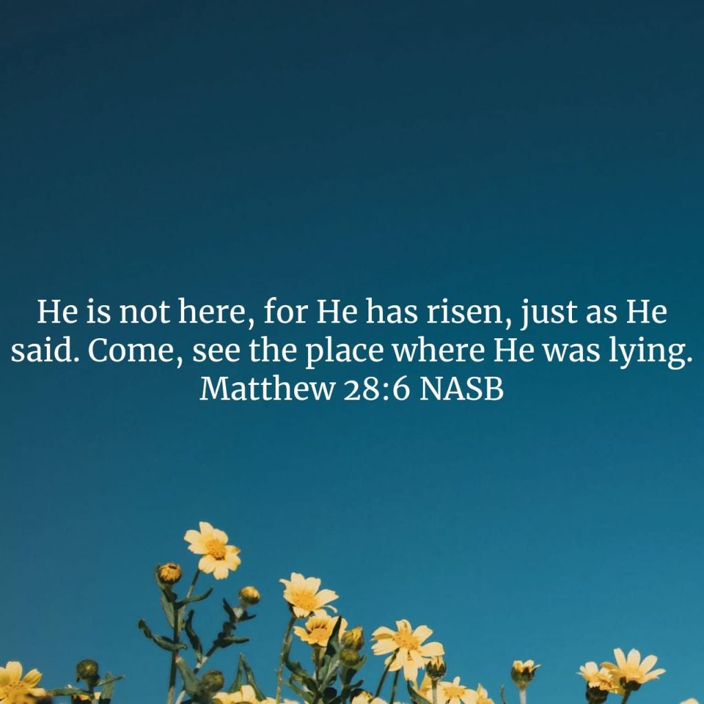It’s Resurrection Sunday. The day He got up! Not much to say today, except Jesus defeated death when He rose from the grave!